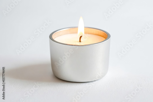 Burning Candle in a Silver Holder