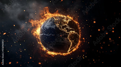 Burning Earth In Space Disaster Graphic Illustration