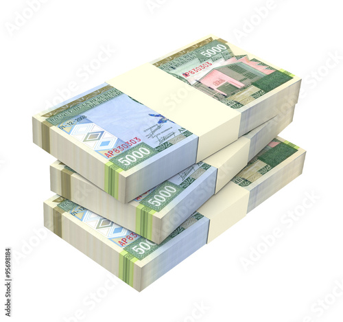 Burundian francs bills isolated on white background. Computer generated 3D photo rendering.