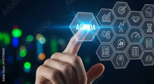 Business Agenda Planning Meeting Digital Interface Male Hand Copy Space