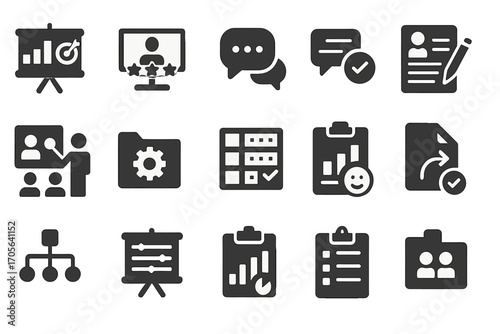 Business and analytics solid icon set. data, management, strategy icons solid collection