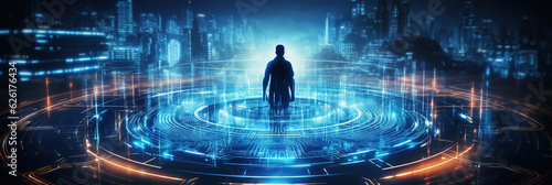 Business and Data Protection, Biometric security identify, face recognition online. AI Generated