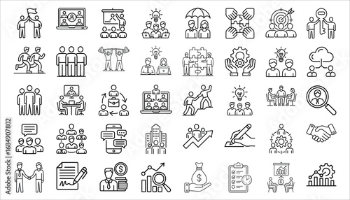 Business and Teamwork Icons Set Collaboration, Partnership, Meeting, Success, Growth