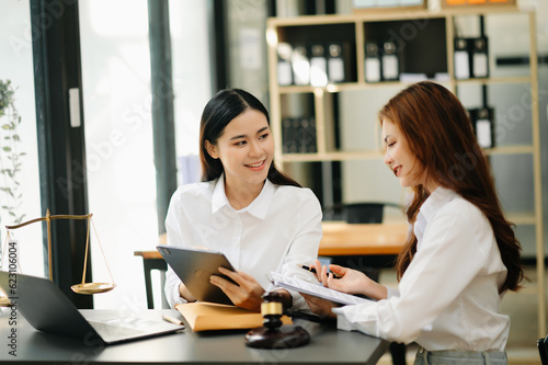business Asian people and lawyers discussing contract papers sitting at the table. Concepts of law, advice, legal services.