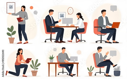 Business Concept illustrations. Mega set. Collection of scenes with men and women taking part in business activities. Vector illustration. High quality