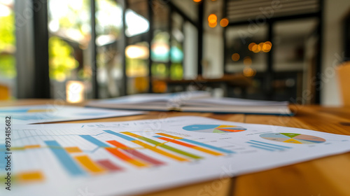business data statistics documents on the table in modern office, business growth analysis