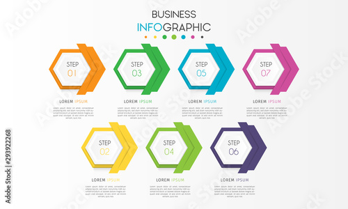 Business data visualization. Timeline infographic element with 7 options, steps, number vector template design