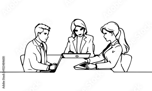 Business Group Trendy Line Art Drawing. Business People in Office Minimalistic Black Lines Drawing on White Background. Continuous One Line Abstract Drawing. Peoples Modern Design. Vector EPS 10