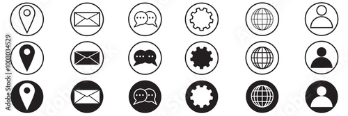 Business icon for company connection set in different style. Name, phone, mobile, place, location, mail, website and message card sign. Contact symbol design template. Vector 10 eps.