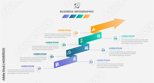 Business infographic Gradient color process with arrow shape design with icons 7 big number and 7 options,Vector illustration.