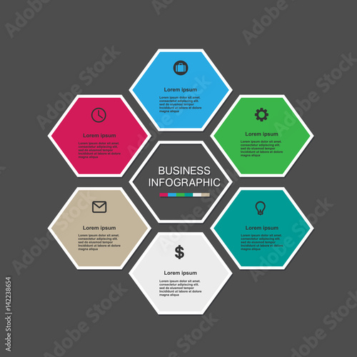 Business infographic hexagon in flat design. Layout for your options or steps