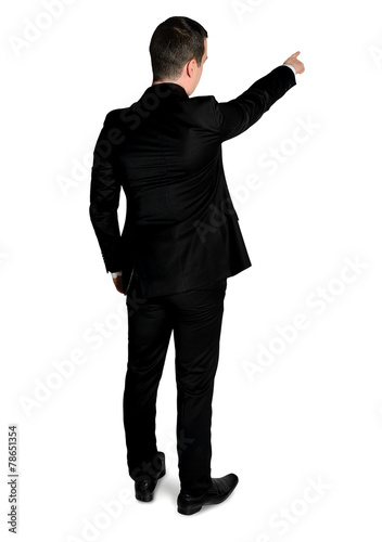 Business man pointing back
