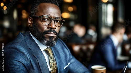 Business Meeting in a Café: Professional in a Blue Suit