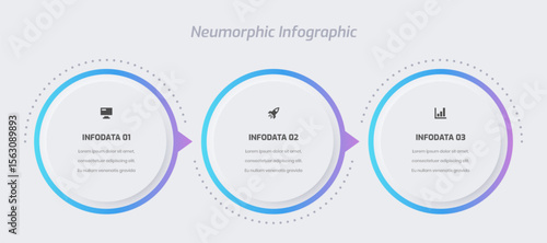Business neumorphic infographic presentation with gradient color circle label 3 option and icon