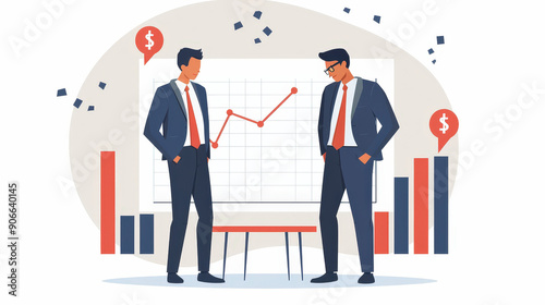 Business partners discussing market crash impacts, price drop business, flat illustration design.
