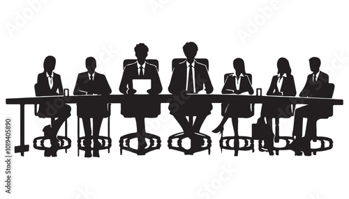 Business people sitting on conference or other meeting silhouette vector illustration black and white art
