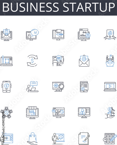 Business startup line icons collection. Entrepreneurial venture, Company launch, New business, Launchpad, Innovative startup, Commercial start, Venture launch vector and linear illustration. Creative