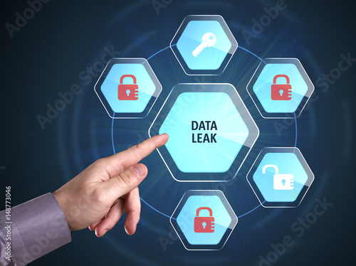 Business, Technology, Internet and network concept. Young businessman shows the word: Data leak