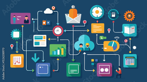 Business Workflow and Data Management Illustration - Flat Design Concept