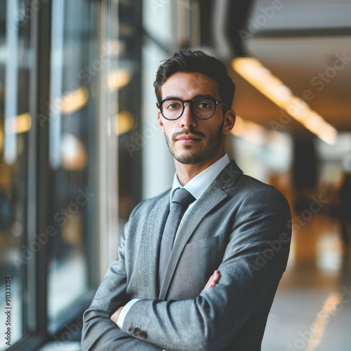Businessman in a setting with clear space for messaging.