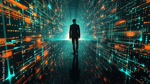 Businessman in Data Driven Decision Making Big Data - Man Internet of Things Analytics Data Management