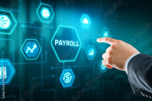 Businessman Interacting with Digital Payroll Interface in a Modern Financial Technology Environment