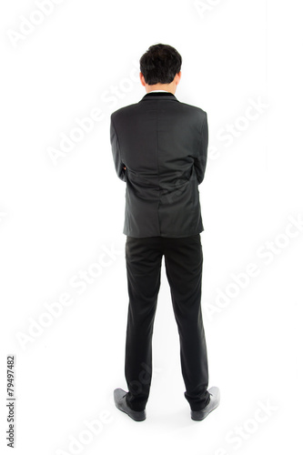 Businessman standing with back isolate
