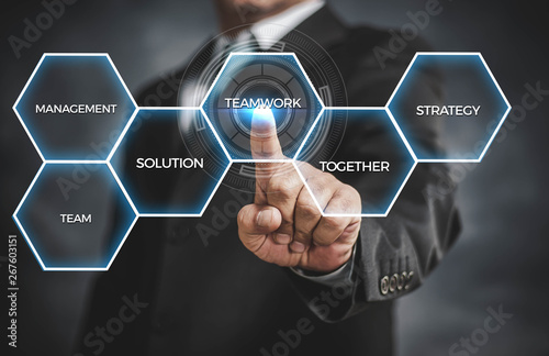 businessman touching the screen with his hand