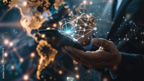 Businessman using blockchain for efficient currency exchange transaction