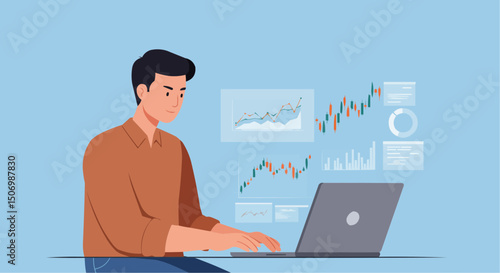 Businessman with laptop working on computer technology with internet cloud network