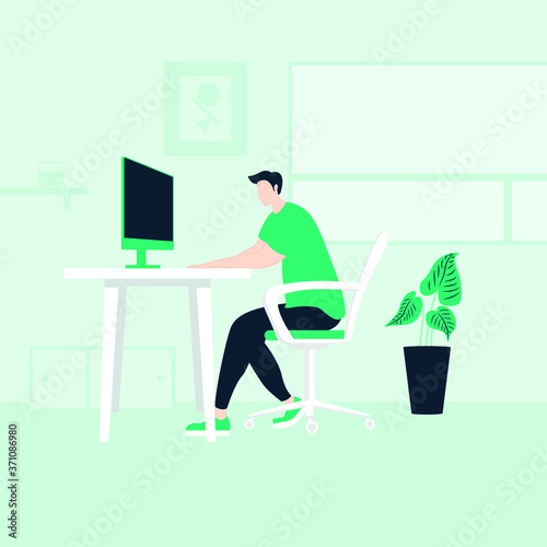 Businessman working on laptop, Freelancer working at home, Young man sitting working at desk