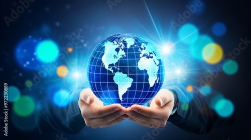 Businesspersons Hands Holding Glowing Earth Globe, Technology And Innovation Concept.