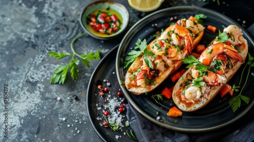 Butter-Poached Lobster Rolls with Spicy Sauce. copy space