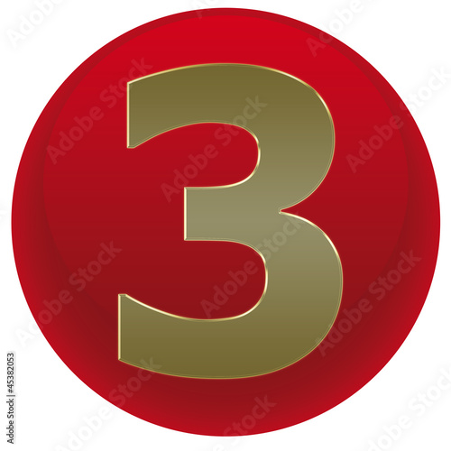 Button rot - Zahl 3 aus Gold
