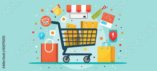 buying products online shopping card delivery flat design top view ecommerce convenience theme animation vivid