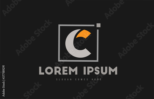 C alphabet letter logo icon in orange grey black. Dot square design for company and business identity