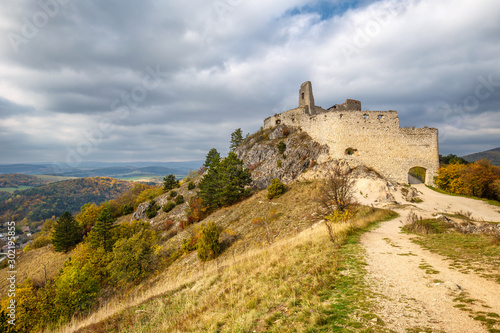 Cachtice castle with surrounding landscape in autumn time, Slovakia, Europe.