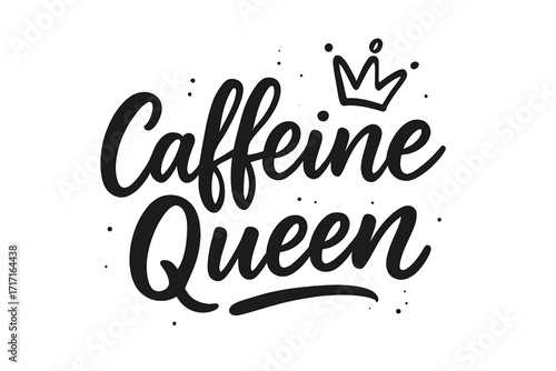 Caffeine Queen lettering quote with crown. Hand drawn calligraphy for coffee lovers. Funny typography poster design. Modern brush script vector illustration for print on apparel.