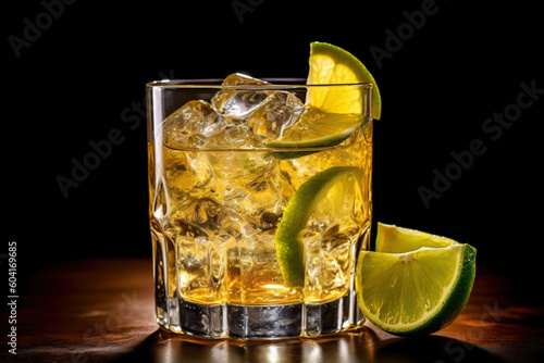 Caipirinha cocktail made of lemons, lemon as garnish. Generative AI.