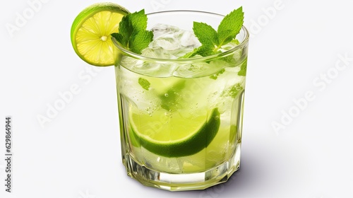 Caipirinha mojito cocktail isolated on transparent background, generative ai