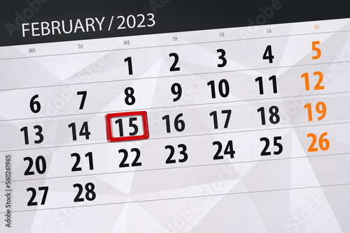 Calendar 2023, deadline, day, month, page, organizer, date, february, wednesday, number 15