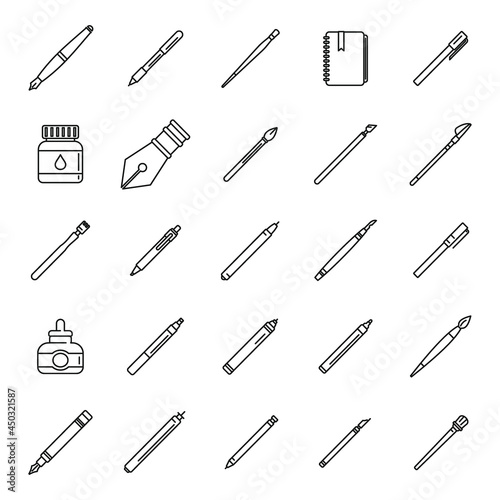 Calligraphy tools icons set outline vector. Paint nib