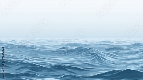 Calm ocean waves under a hazy sky.