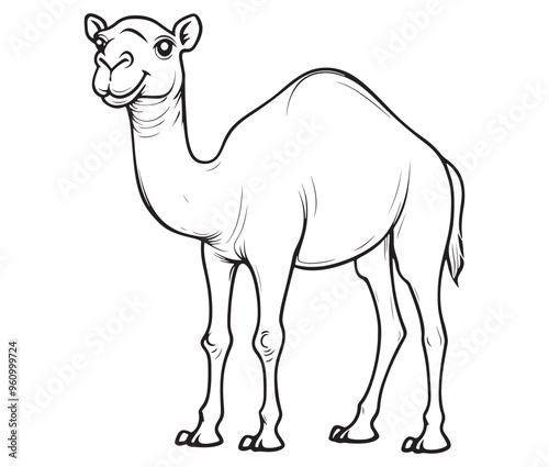 Camel cartoon illustration coloring page of a cute camel