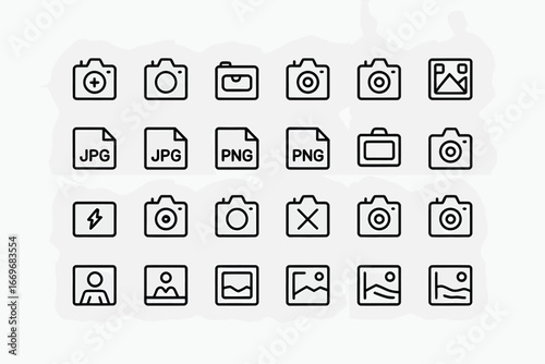 Camera icons vector set for photography website design and mobile application interface in line style