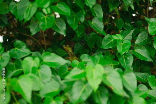 Camouflaged lizard hiding in dense leafy tree in Puerto Rico