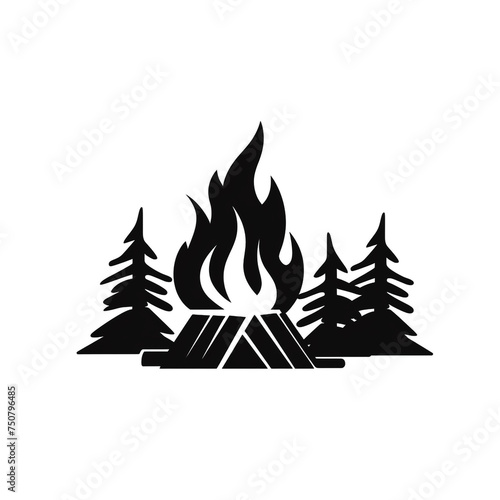 campfire silhouette, solid black, no color, white background сreated with Generative Ai