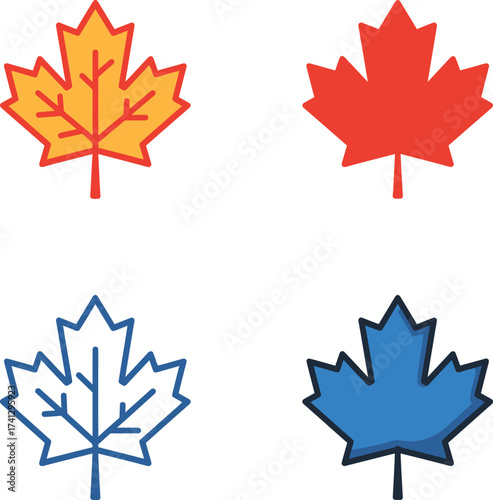 Canadian Maple Leaf Icons: Red, Gold, Blue, Outline