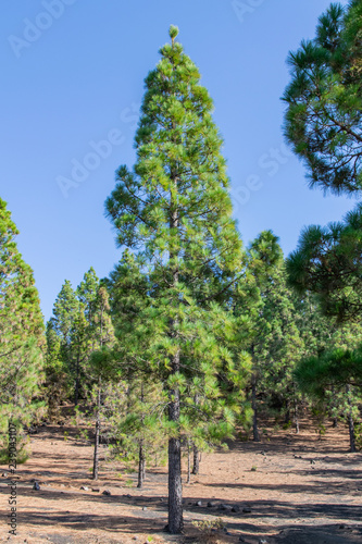 Canary Island pine (pinus canariensis) growing amongst the volcanic landscape of Llanos del Jable, La Palma Island, Canary Islands, Spain