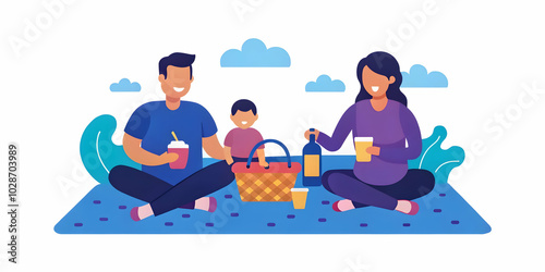 Candid Shot of Family Enjoying a Picnic in the Park - Open Space & Greenery for Promotional Use